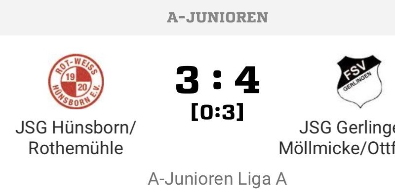 A-Junioren Kreisliga A – 16.Spieltag: JSG Hünsborn./Rothem. – JSG Gerl./Möll./Ottf. 3:4 (0:3)