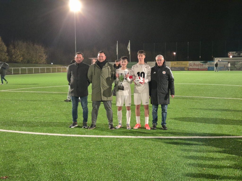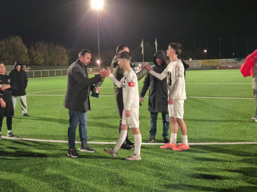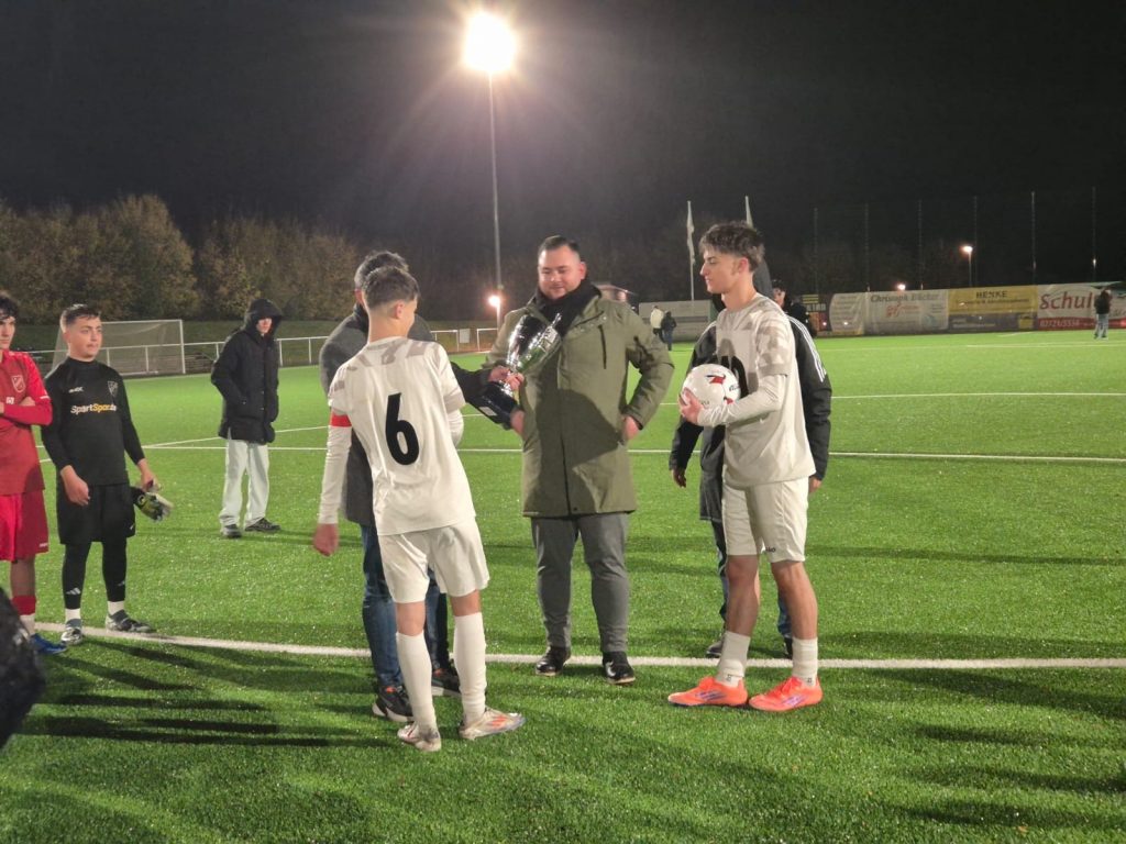 Im Anschluss folgte die Siegerehrung, wo Staffelleiter Dedo Arapovic den Wanderpokal überreichen konnte. Zudem gratulierten Raimund Nöker und Armin Arapovic seitens des Kreis-Jugendausschusses und wünschten viel Glück im Westfalenpokal, der Anfang Dezember ausgespielt wird.