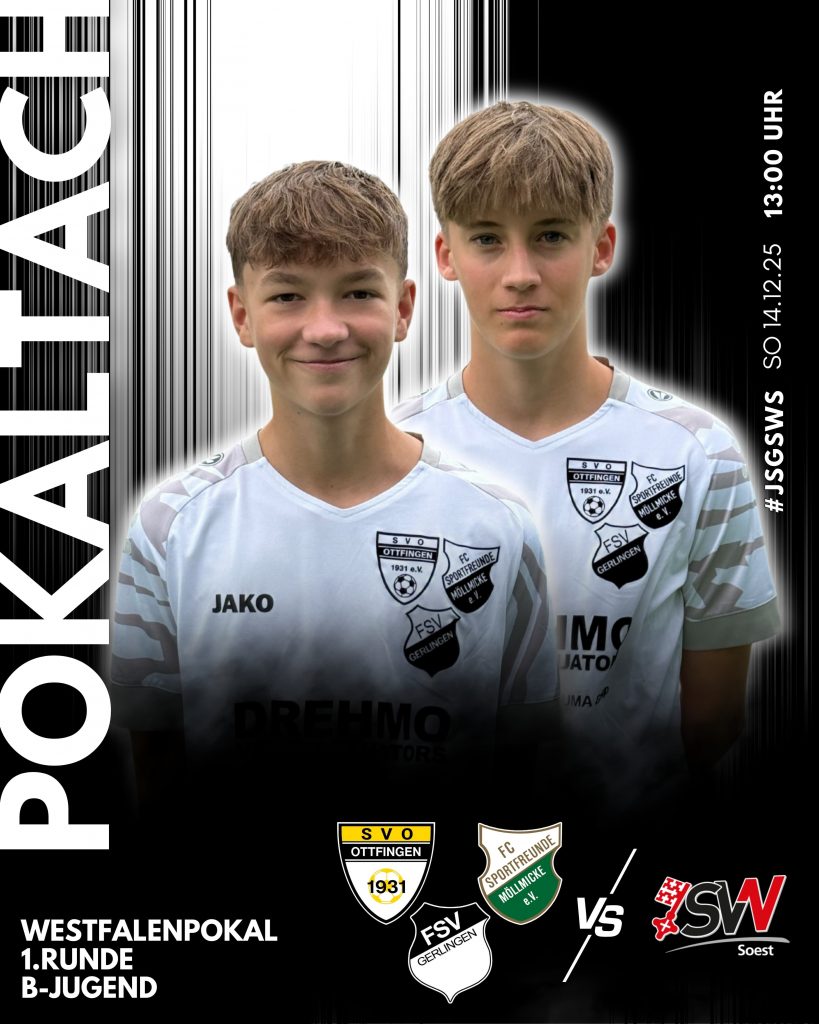 In der ersten Runde im Westfalenpokal trifft unsere B-Jugend auf den favorisierten Landesligisten SV Westfalia Soest.