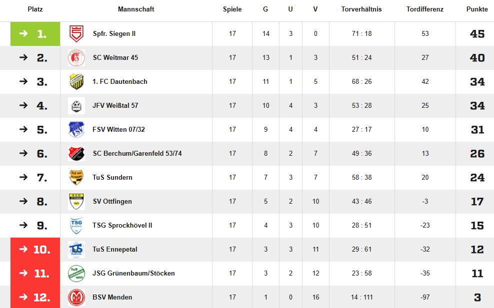 3 Minuten nach Wiederbeginn traf Vleron zum 0:1 für uns. Es dauerte 7 Minuten, bis er einen lupenreinen Hatrick erzielen konnte. Ein Fehler im Aufbauspiel nutze die Heimmannschaft zum 1:3 Anschlusstreffer. Felix in unserem Tor war hier chancenlos. Ca. 1 Minute später erzielte Vleron seinen 4. Treffer. 2 Minuten vor der Halbzeit erzielte Vleron das 5te Tor. So ging es dann mit einer 1:5 Führung in die Halbzeit. Den wenigen Schatten auf dem Sportplatz nutze die Mannschaft, um die Halbzeitpause an der frischen Luft zu verbringen. Nach der Halbzeitpause konnten sich weitere Spieler in die Torschützenliste eintragen. Quinn eröffnete die Torfolge nach einem super Lauf über die rechte Seite. Mohamed erhöhte dann auf 1:7, ehe Vleron die Treffer 8 und 9 für uns erzielen konnte. Den 10. Treffer konnte Alex nach schöner Vorarbeit besorgen. Das 11 Tor war dann Jonathan vorbehalten. Paul erzielte das 12. und 14. Tor. Elmedin sorgte für das 13. Tor. Den Schlusspunkt setzte dann der Spieler des Spieles, Vleron sorgte abschließend zum 1:15. Auf Grund der Verletzung, ist die Höhe des Sieges sicher nicht überzubewerten, aber es war eine Ansage an die Konkurrenz zum Klassenerhalt. Das Restprogramm hat es aber noch in sich. Am kommenden Wochenende geht es gegen den Tabellenzweiten am heimischen Siepen. Mit den Sportfreunden Siegen II, Weißtal und Witten warten noch weitere Gegner aus den Top 5 der Liga. Aber mit 5 Punkten Vorsprung auf den ersten Abstiegsplatz und mit einem deutlich besseren Torverhältnis von  29 Toren hat die C-Jugend alles in der eigenen Hand. Wir freuen uns am 02.05. um 15 Uhr auf eure Unterstützung gegen Weitmar.